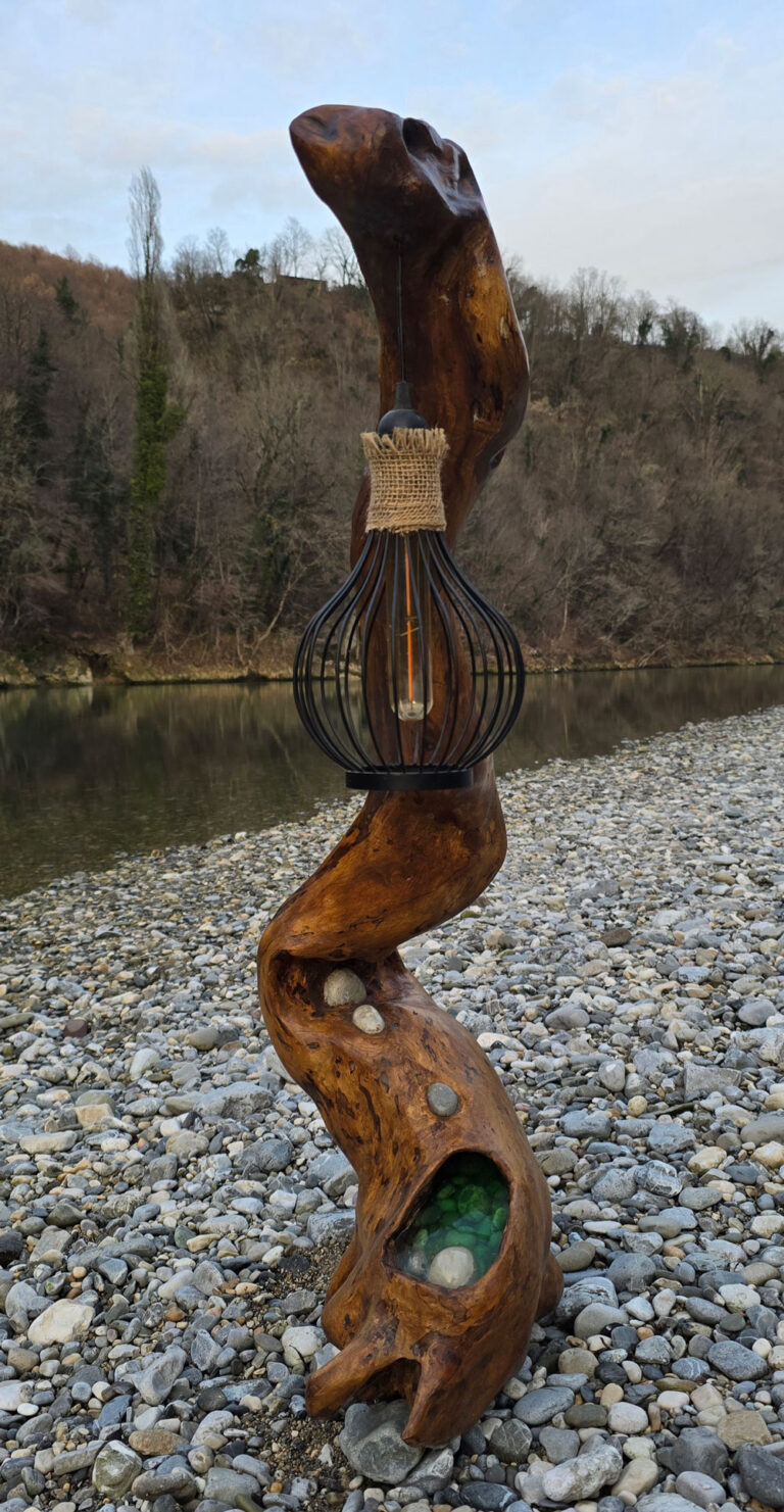 Poleg sijalke v mreži vsebuje tudi v zelenem epoksidu ulite soške prodnike, vse skupaj pa sije v barvi Soče.
